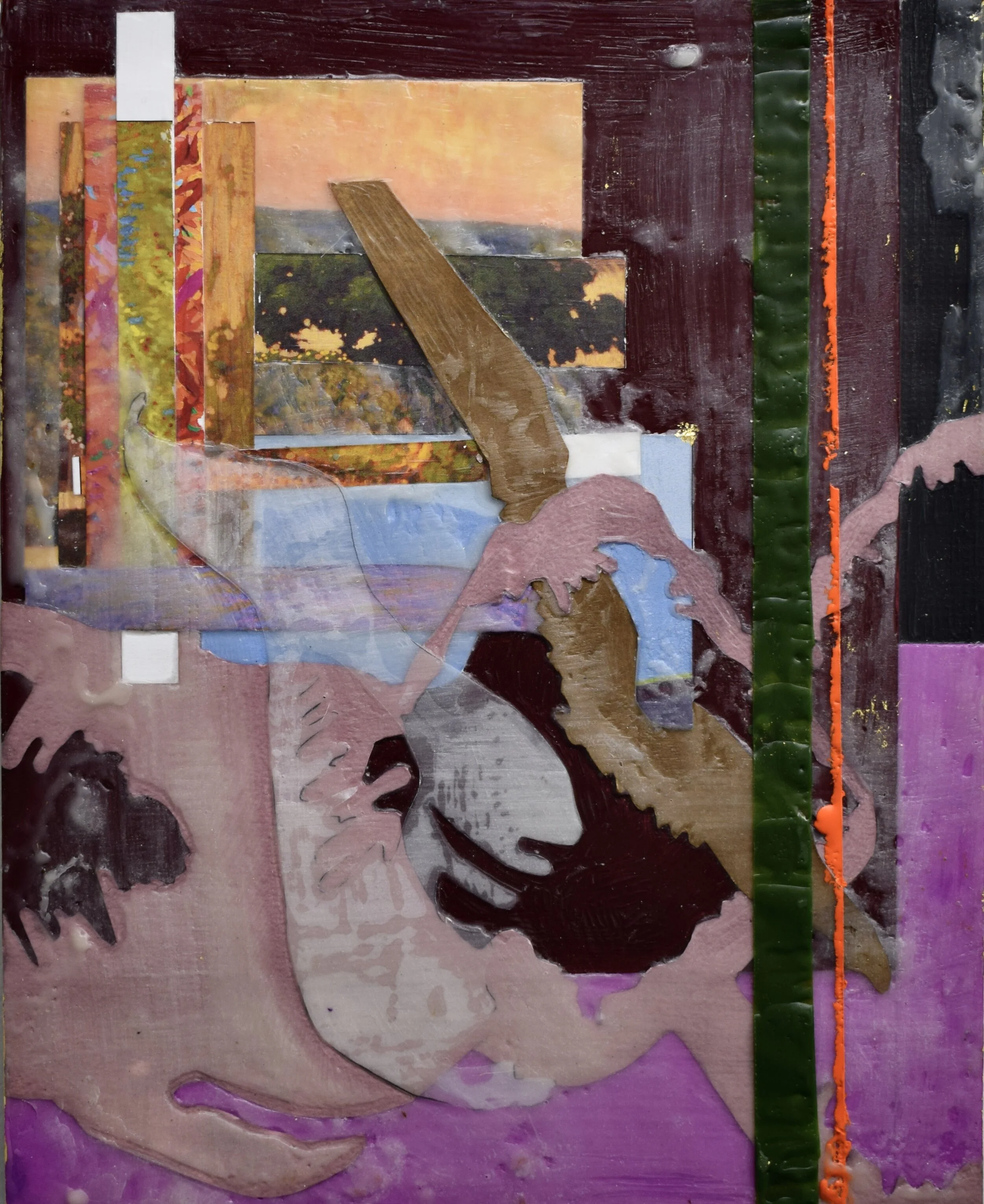 The partially humanoid representations, which have been birthed by the caress of light, have the ability to occupy both positive and negative spaces at once. Where the light rests on a surface it creates an abstracted “fingerprint” of the form, cropping and distorting its true identity. How can light blend? How can it distill? Playing with layering and color relationships creates a sense of both deep and shallow space simultaneously. A metaphor for multiple fragmentary moments that progress and bloom together. That do no proceed in a linear fashion.